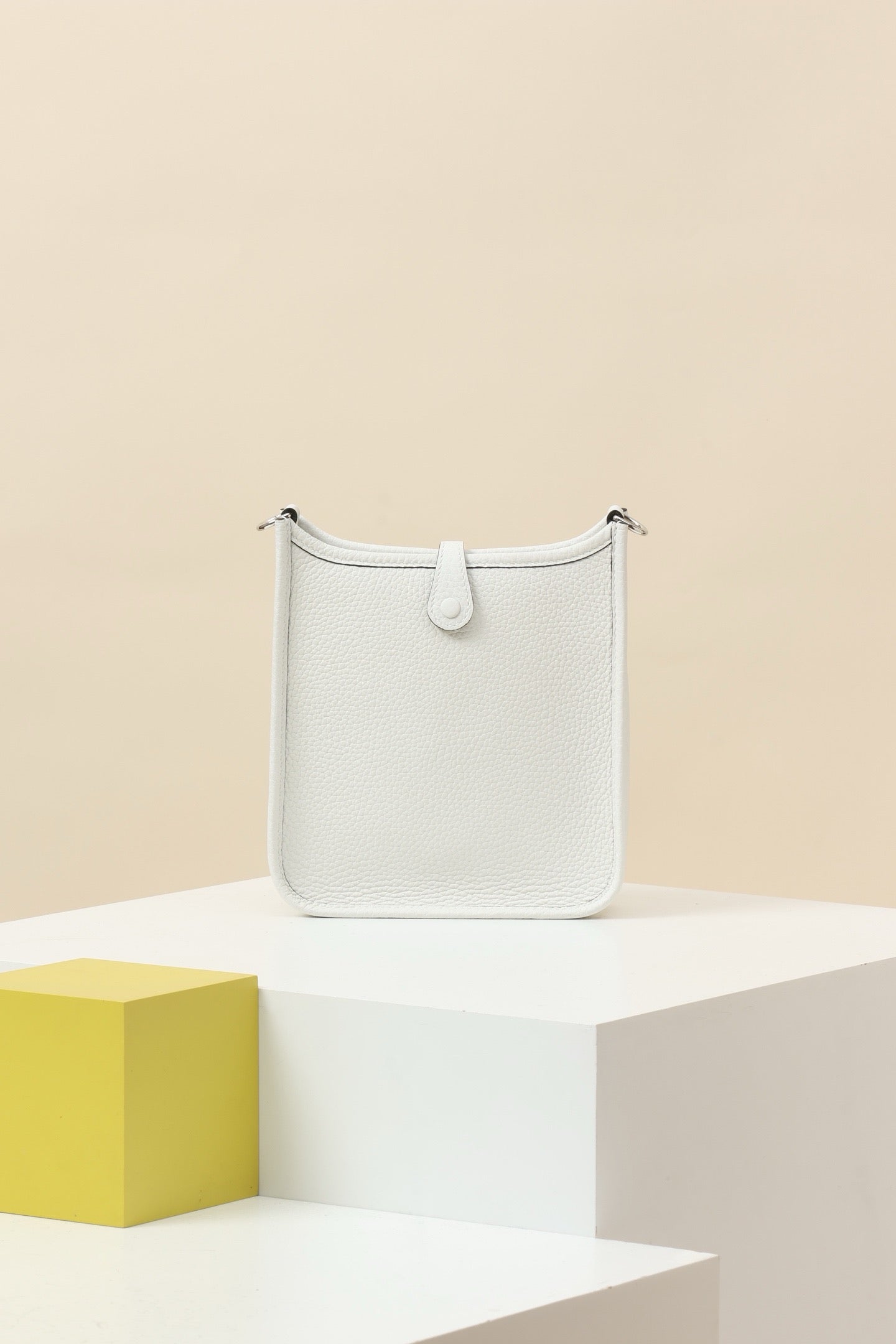 YF16 OU New White ,Clemence bull leather crossbody bag , PHW #4409